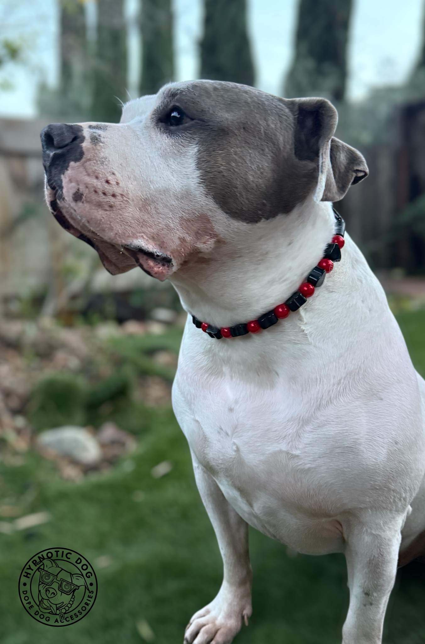 Virtually unbreakable collars. Hypnotic Dog collarsĀ are crimpedĀ securelyĀ twice; all beads fed through aircraft grade steel wireĀ (with a tensile strength of ~320lbs). Choose from 3 options: slip-on, martingale chain, & buckle style collars.Ā