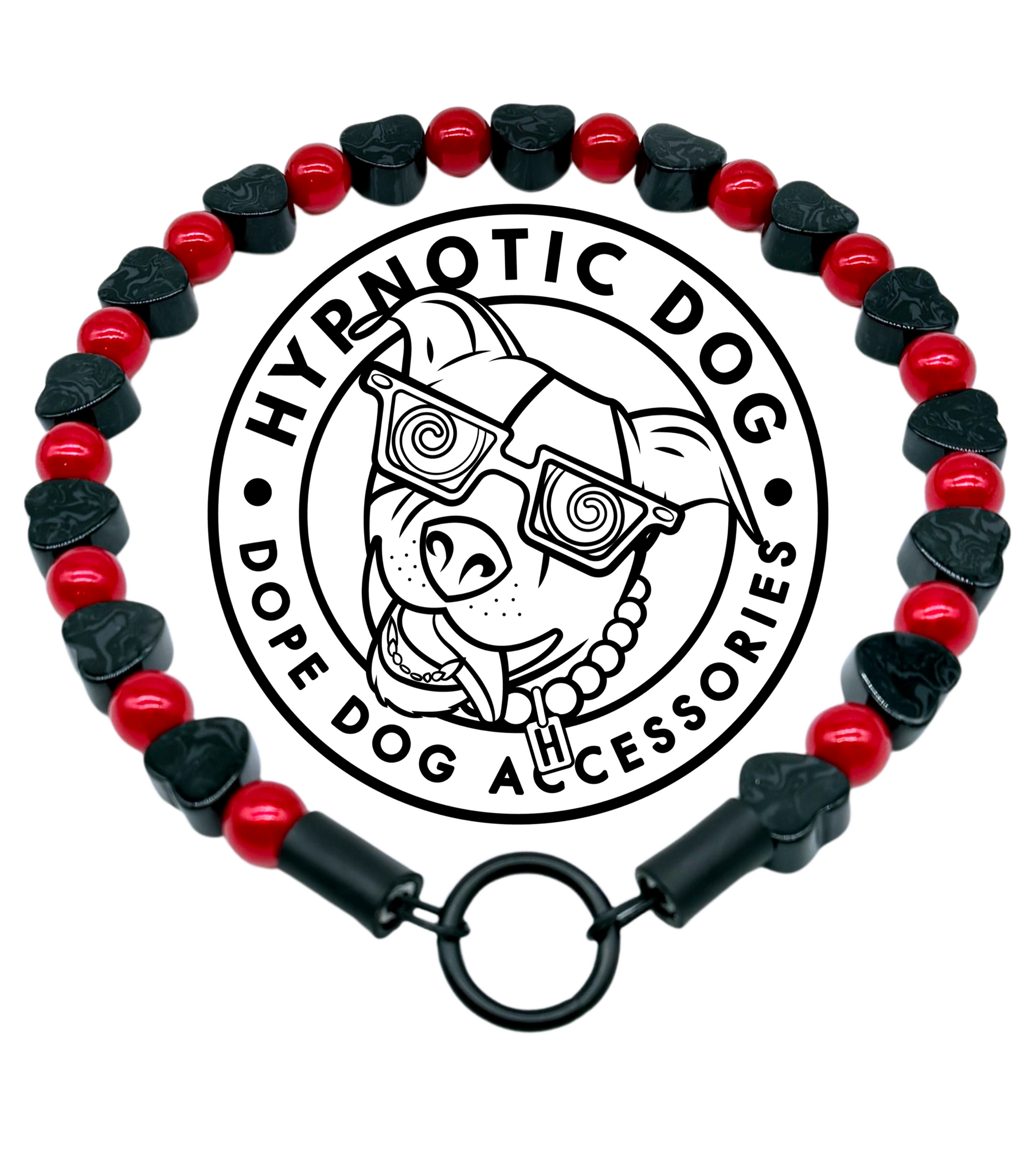 ↠ Ā Heartbreaker Bead Collar ā†ž New black imitation gemstone resin black large heart beads paired with mini-sized shiny red pearl acrylic beads. šŸ–¤ā™„ļøāœØ