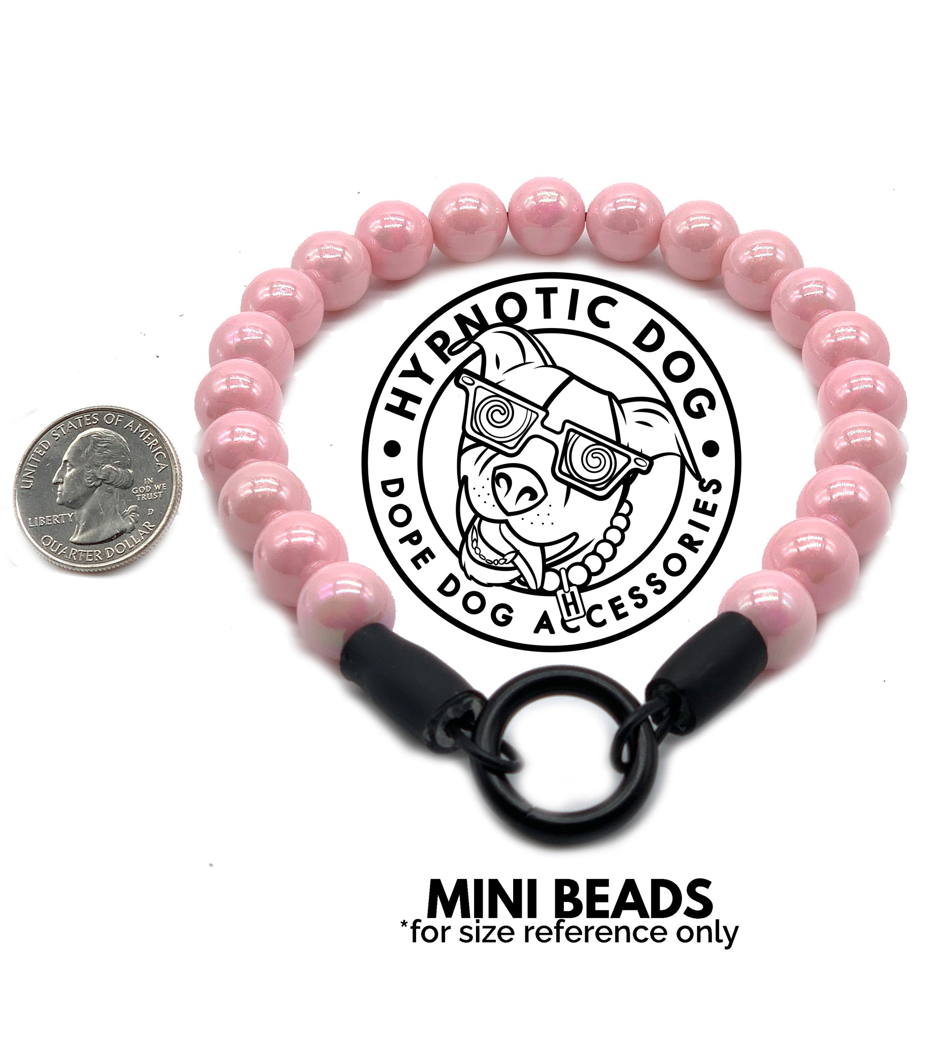 Virtually unbreakable collars. Hypnotic Dog collarsĀ are crimpedĀ securelyĀ twice; all beads fed through aircraft grade steel wireĀ (with a tensile strength of ~320lbs). Choose from 3 options: slip-on, martingale chain, & buckle style collars.Ā