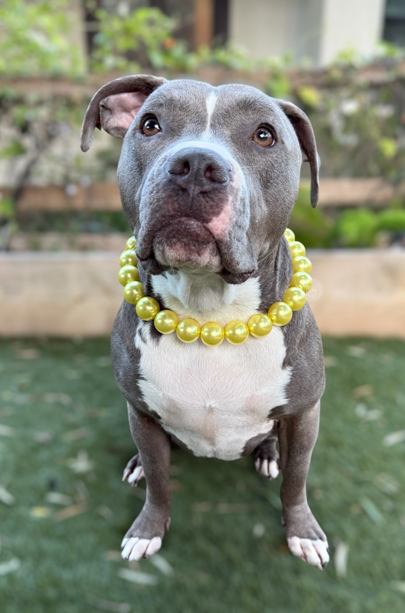 ↠ Chunky Yellow Pearls Acrylic Bead Collar ↞ Jumbo (XL), oversized golden yellow colored acrylic pearl beads. Add the perfect pop of color to your precious pooch with this oversized beads in this perfect springtime yellow! 🌼 Current batch is more sunny yellow vs golden in previous years (as updated in main photo!)