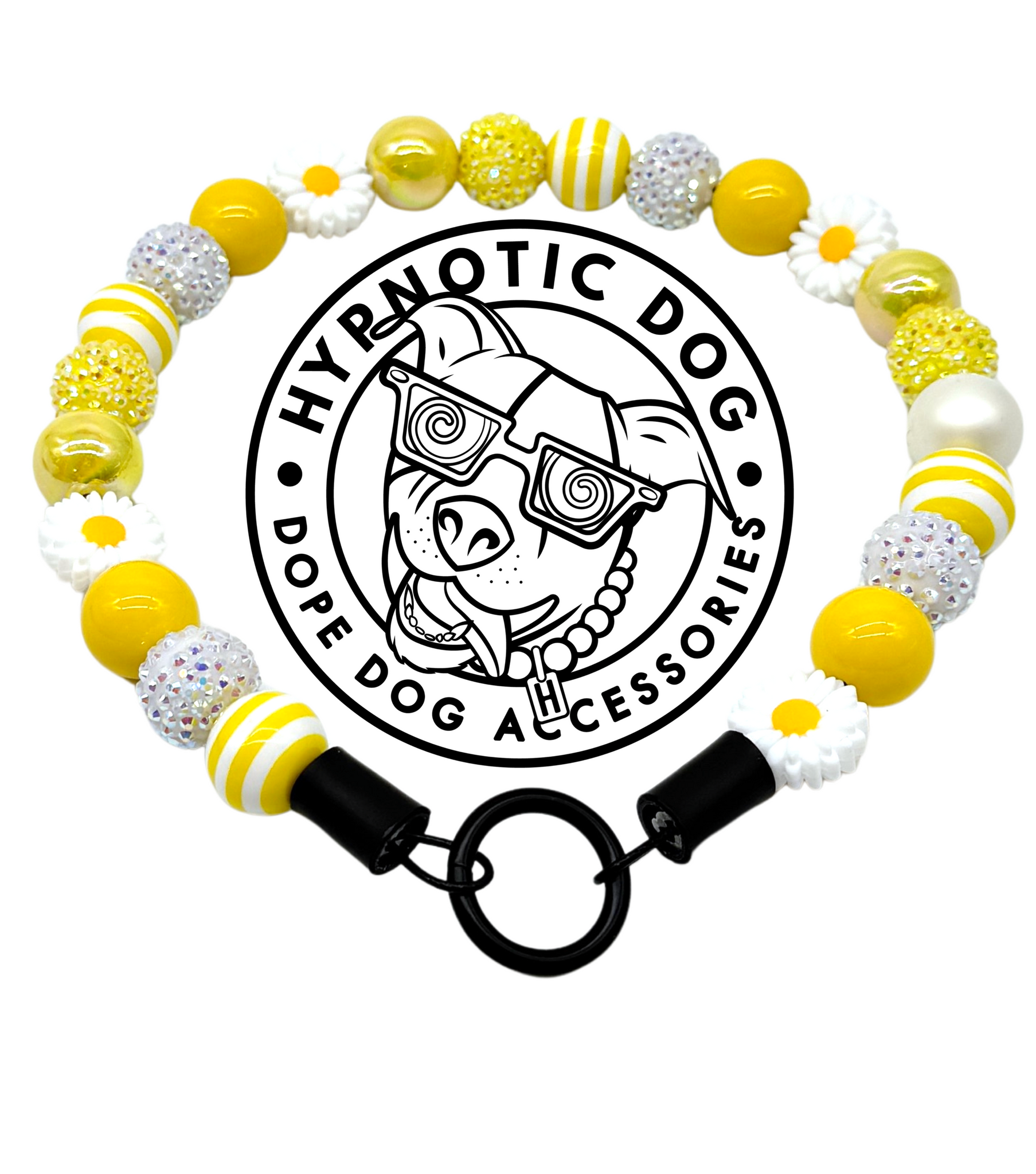 ā Yellow Daisy ā New! This Spring mix has new XL white silicone daisies with a golden yellow center, yellow acrylic beads, resin striped beads, and resin rhinestone sparkles.Ā