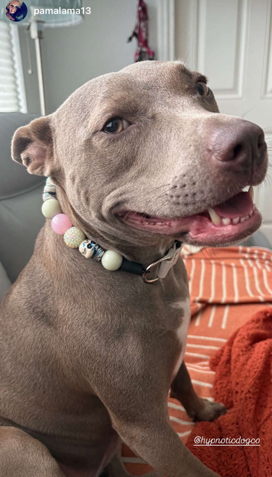 Virtually unbreakable collars. Hypnotic Dog collars are crimped securely twice; all beads fed through aircraft grade steel wire (with a tensile strength of ~320lbs). Choose from 3 options: slip-on, martingale chain, & buckle style collars.