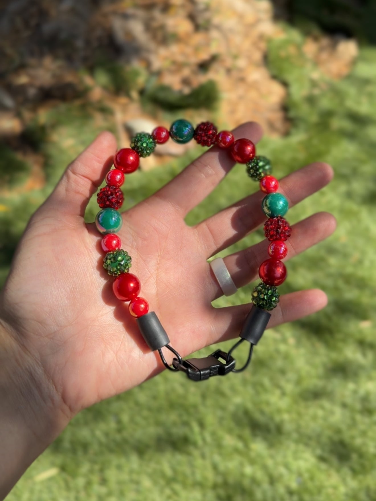 ↠ Mistletoe Glam MINI Glam Collar ↞ Smooth, lightweight *mini* sized festive red pearl beads, red & green resin rhinestone sparkle beads, paired with XS shiny red acrylic beads.