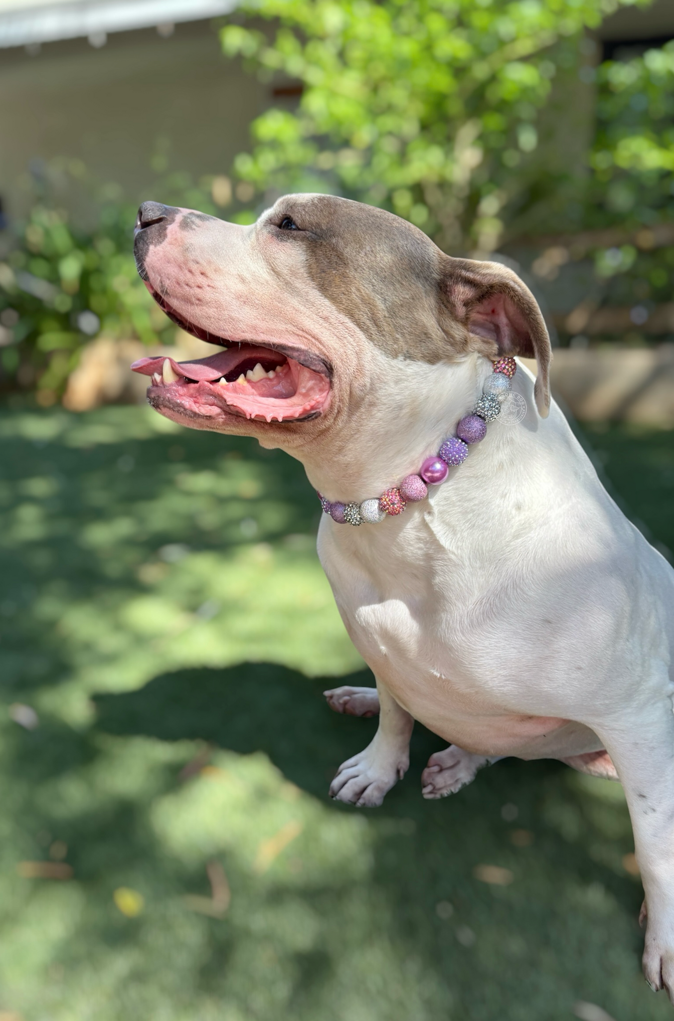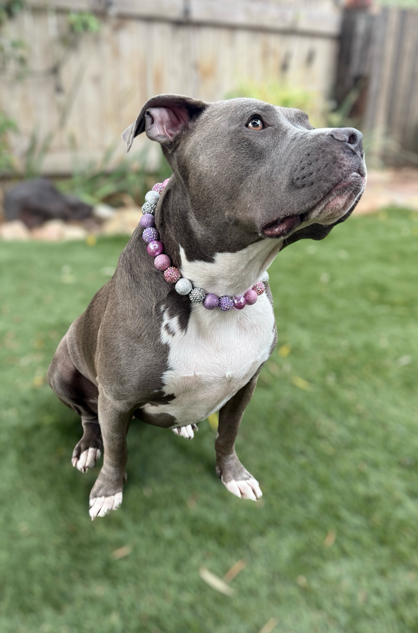↠ Winter Plum Collar ↞ Smooth, lightweight pink, purple, and silver stardust glitter beads, orchid purple pearls, and matching tone resin rhinestone sparkle beads. 💜💗