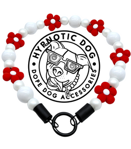↠ Red & White Daisies Glam 🌼 Silicone Bead Collar ↞ New and limited edition! Jumbo sized bright red flower shaped silicone beads paired with regular (large) white acrylic beads and mini matte white acrylic bead dividers.
