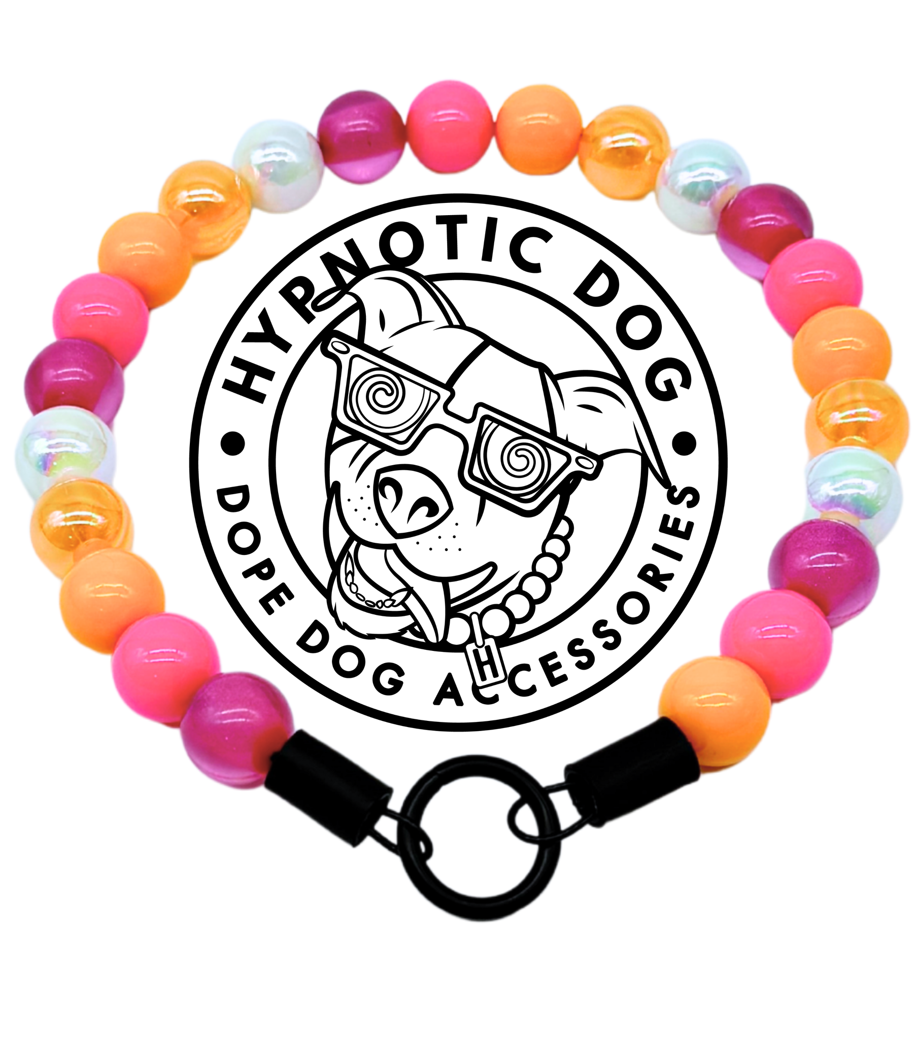 Virtually unbreakable collars. Hypnotic Dog collars are crimped securely twice; all beads fed through aircraft grade steel wire (with a tensile strength of ~320lbs). Choose from 3 options: slip-on, martingale chain, & buckle style collars.