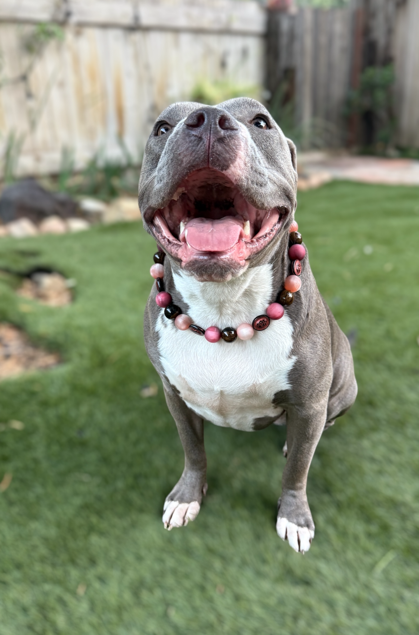 Virtually unbreakable collars. Hypnotic Dog collars are crimped securely twice; all beads fed through aircraft grade steel wire (with a tensile strength of ~320lbs). Choose from 3 options: slip-on, martingale chain, & buckle style collars.