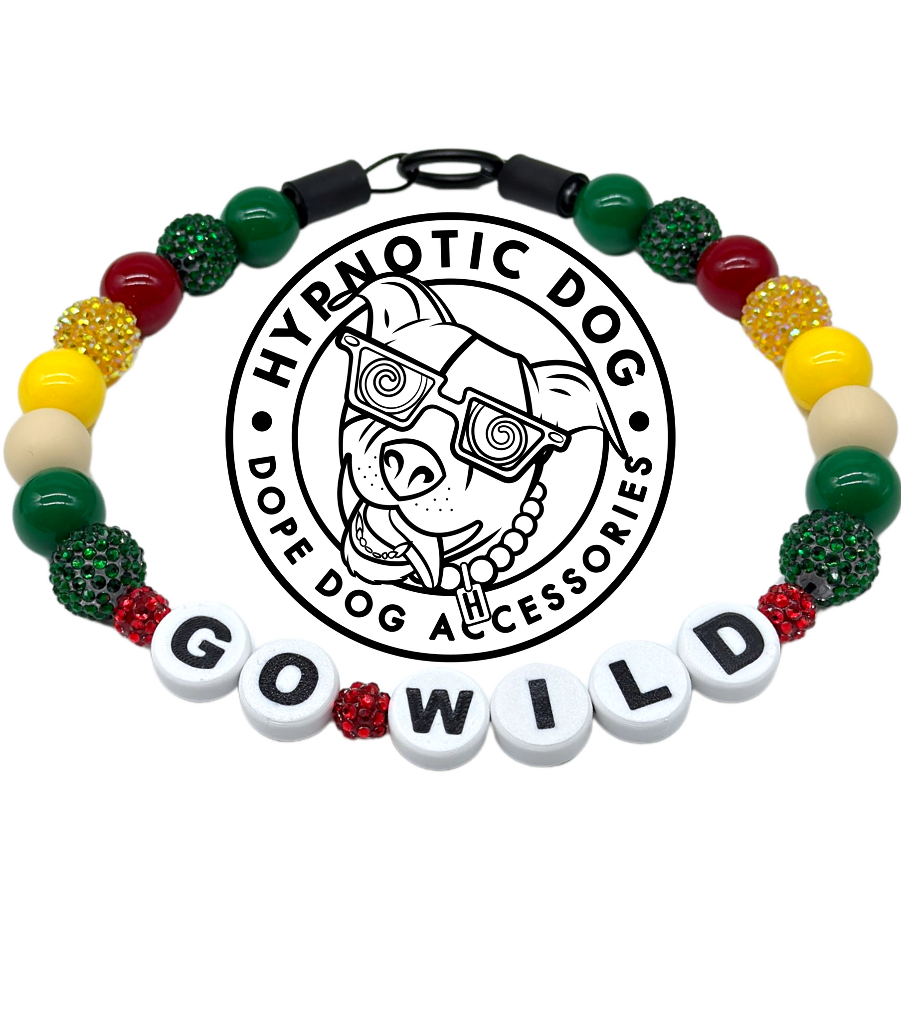Virtually unbreakable collars. Hypnotic Dog collarsĀ are crimpedĀ securelyĀ twice; all beads fed through aircraft grade steel wireĀ (with a tensile strength of ~320lbs). Choose from 3 options: slip-on, martingale chain, & buckle style collars.Ā