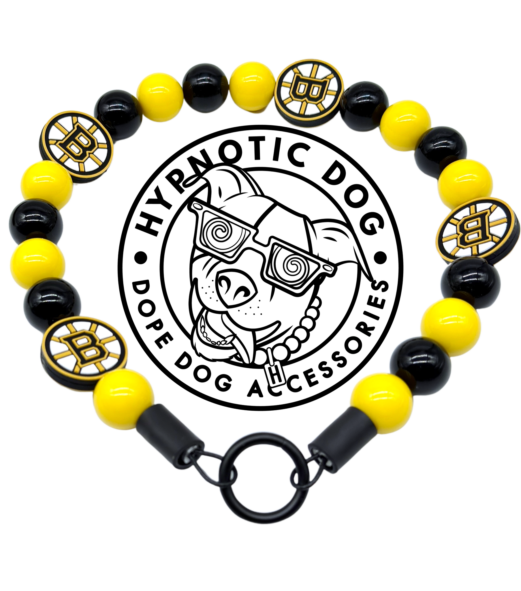 ā Boston Bruins š NHL Inspired Bead Collar āĀ Smooth and lightweight regular sized acrylic beads in black and gold yellow, paired with Boston Bruins inspired silicone beads. Colors are customizable via the Notes box. Sparkle resin rhinestone addition is available via checkbox selections.Ā