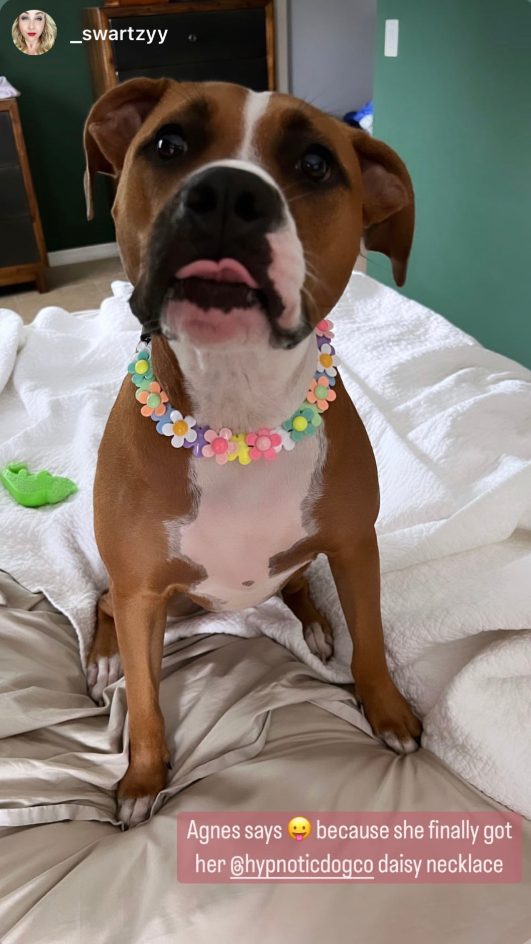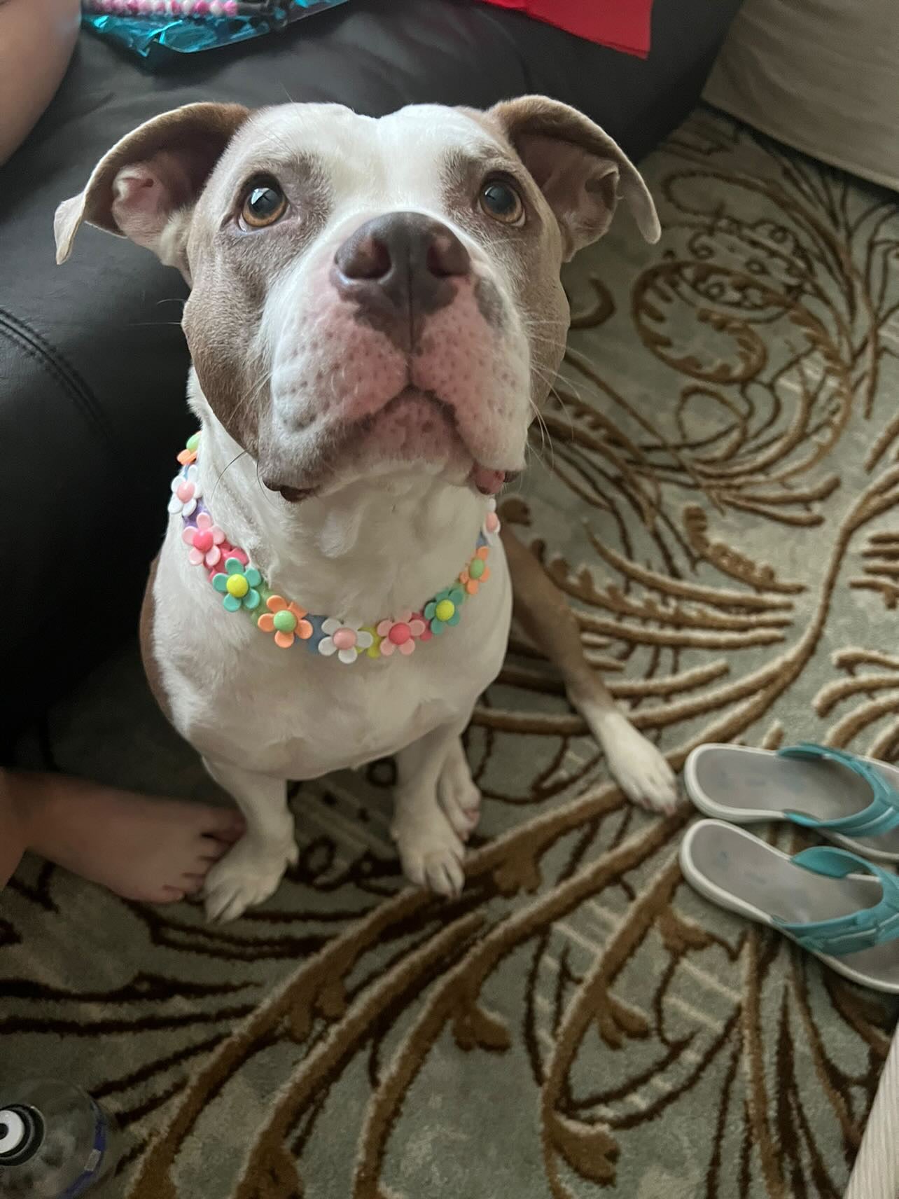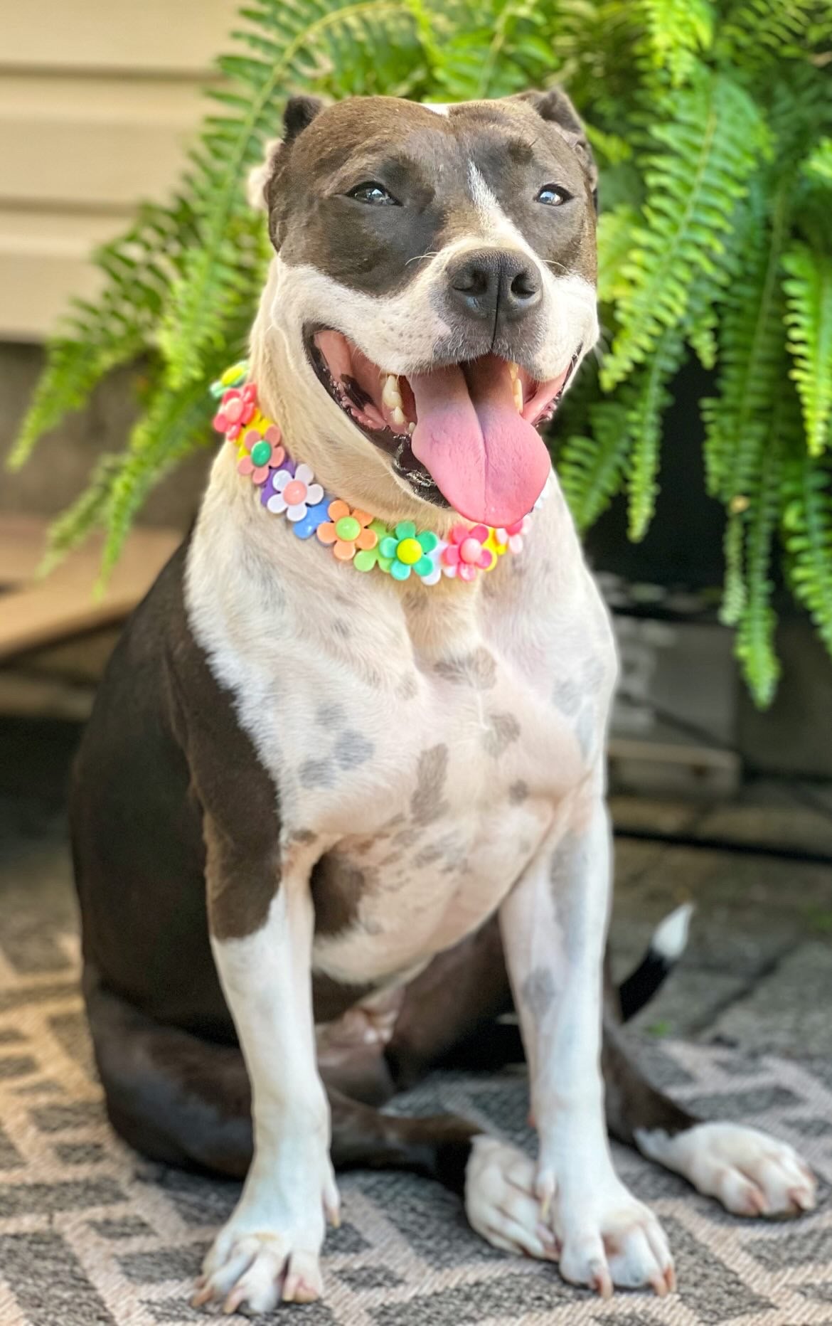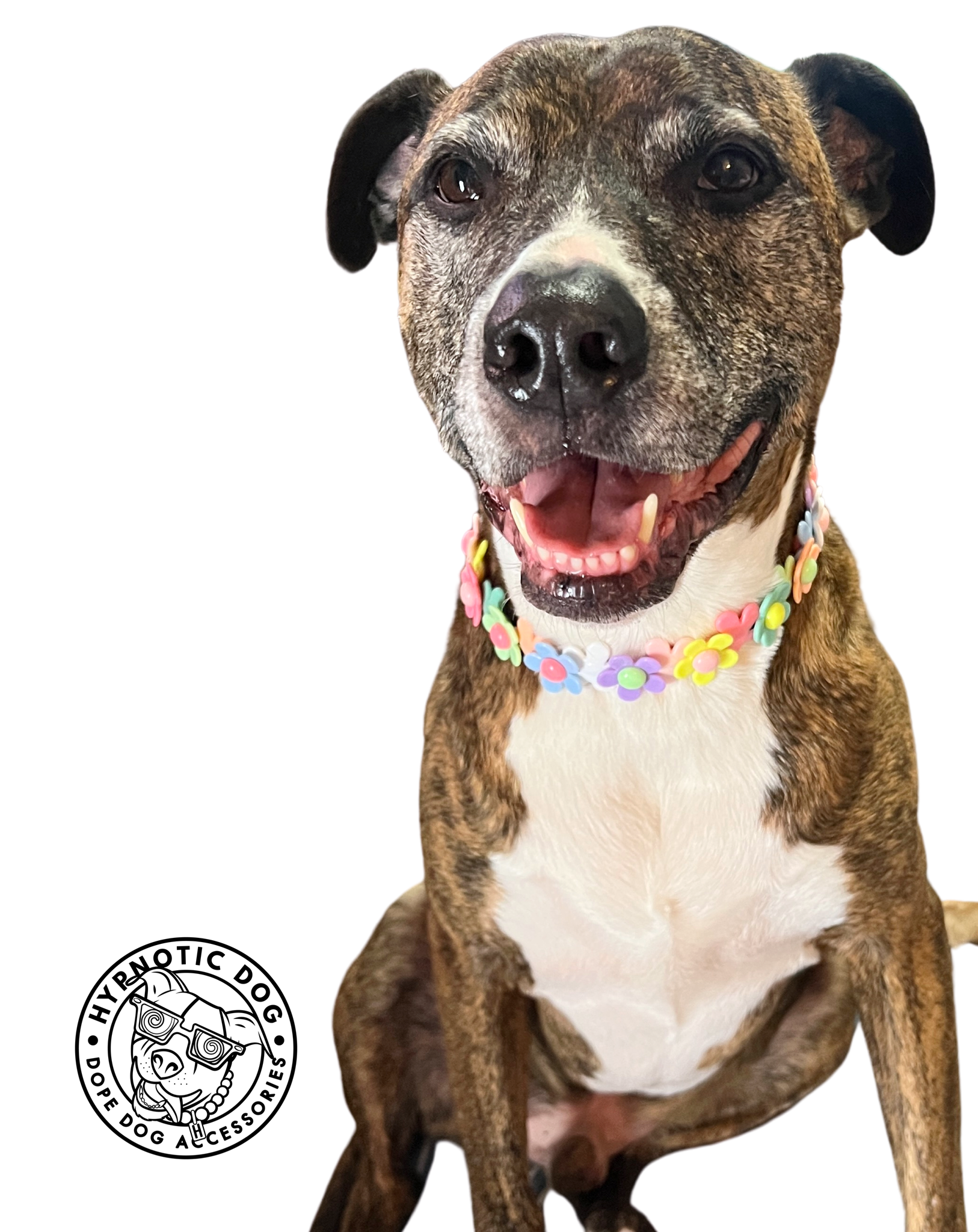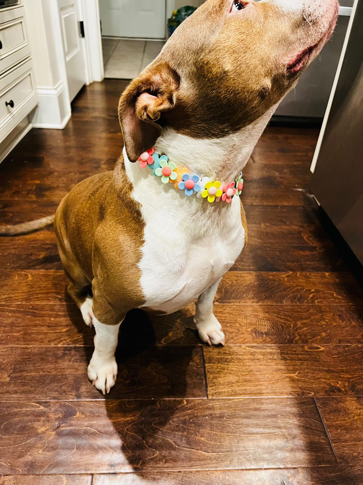 A fun jumbo sized multi-color pattern of large daisy flowers! We couldn't pass this feminine, sweet floral design up for our favorite pups. 🌼💕 Pattern may slightly vary, customizations are not available at this time. These beads are 2mm larger than our "Jumbo" sized beads. This pattern has one flower flipped forward and the next flower flipped backwards overlapping each other (using twice our usual # of beads!) to maximize the appearance of flowers and keep this collar looking its best 😊. Please note, these are flat beads vs round and may need occasional adjustments to keep it flush against the neck.