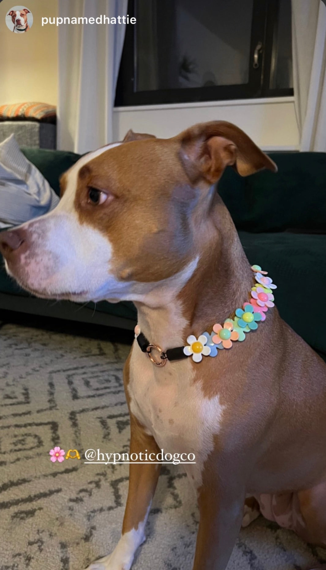 18.5" *Rose Gold O-Ring* Slip On Collar - 🌼 FIELD OF DAISIES 🌼. Please only purchase if your pet's head size is 18.5" at it's widest part as indicated in our Size Guide.