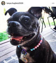 Virtually unbreakable collars. Hypnotic Dog collars are crimped securely twice; all beads fed through aircraft grade steel wire (with a tensile strength of ~320lbs). These waterproof & durable collars should last you + your pup a lifetime. Choose from 3 options: slip-on, martingale chain, & buckle style collars.